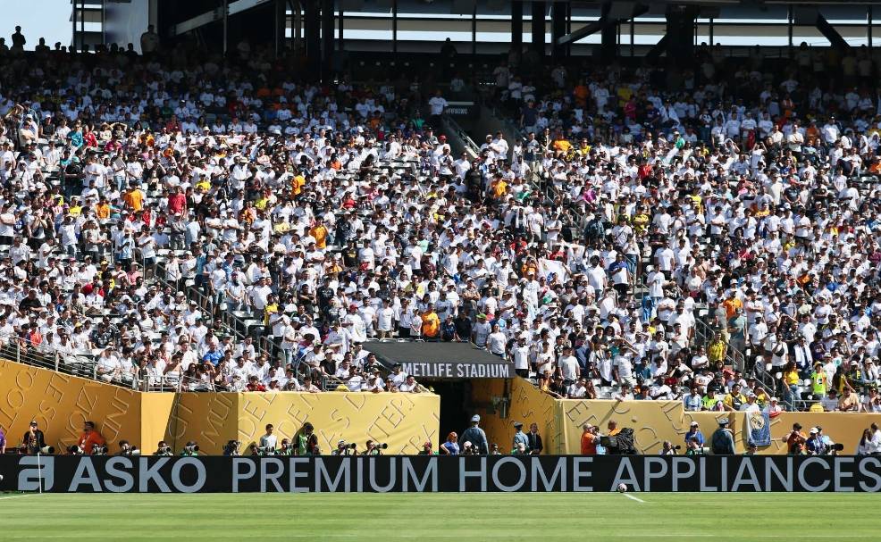 大都会球场观众热情高涨,现场几乎爆满,吸引了76611名球迷到场助威。皇马在本届世俱杯的每场比赛几乎都座无虚席,显示出极高的关注度和支持力度。